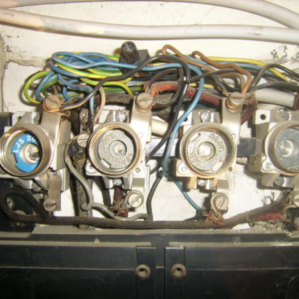 So sah die Zählerverteilung vor der Erneuerung aus. Dieser Zustand fördert nicht nur extrem die Brandgefahr, sondern stellt auch eine lebensgefährliche Situation für Personen dar, die aus dieser Anlage ihre Energie beziehen.